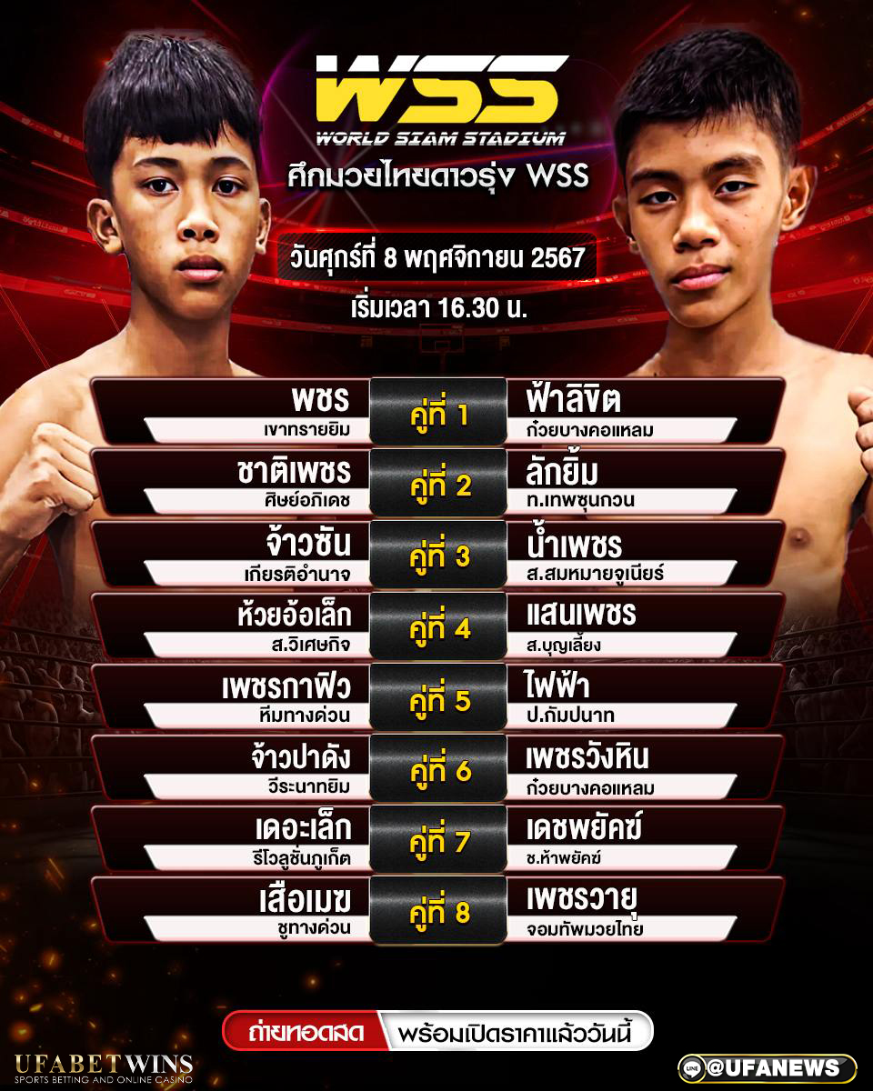 มวยวันนี้ ศึกมวยไทยดาวรุ่งWWS 08/11/67 เริ่มชกตั้งแต่เวลา 16.30 น.