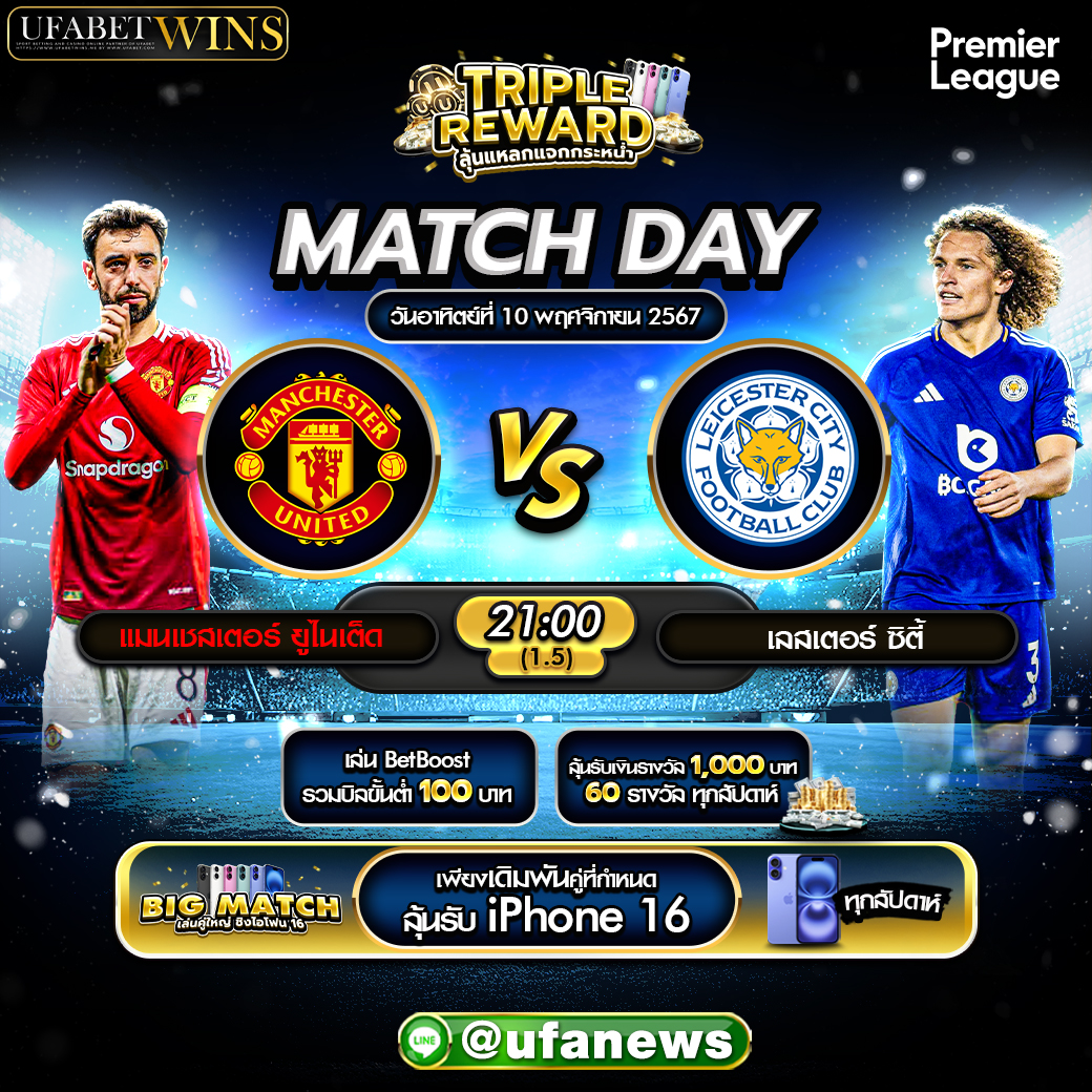 วิเคราะห์บอลพรีเมียร์ลีก : แมนฯ ยูไนเต็ด VS เลสเตอร์ ประจำวันอาทิตย์ ที่ 10 พฤศจิกายน 2567