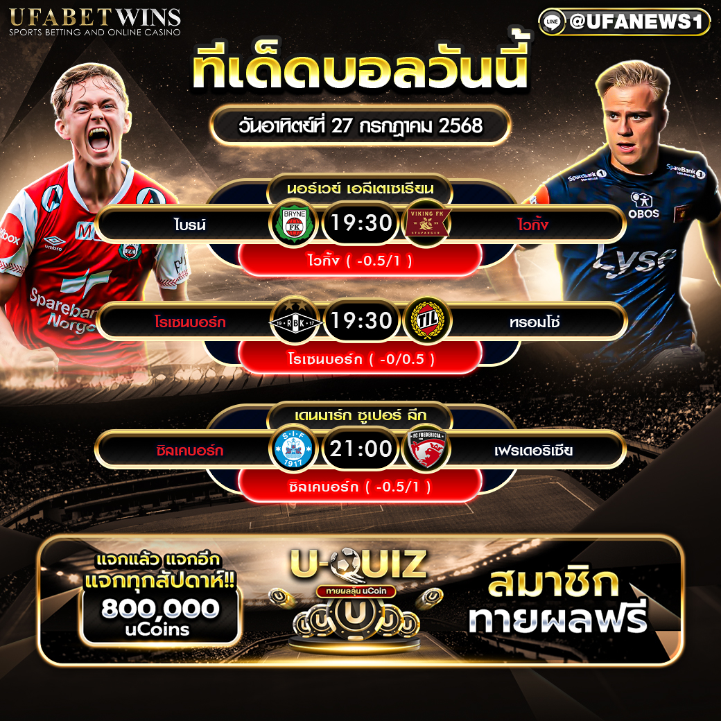 วิเคราะห์บอล วันที่ 27 กรกฎาคม 2568 สำหรับแฟนบอลที่กำลังมองหาแนวทางการลงทุนประจำวัน ทีเด็ดบอลวันนี้ จัดมาแบบเน้น ๆ คัดคู่บอลเด่นจากลีกยุโรปอย่าง นอร์เวย์ เอลีเตเซเรียน และเดนมาร์ก ซูเปอร์ ลีก ที่ลงสนามในค่ำคืนนี้ พร้อมบทวิเคราะห์แบบเจาะลึก ฟันธงทีมที่น่าลงทุน ทั้งราคาต่อรอง ฟอร์มปัจจุบัน และความพร้อมของแต่ละทีม มาดูกันเลยว่าคู่ไหนน่าตาม!