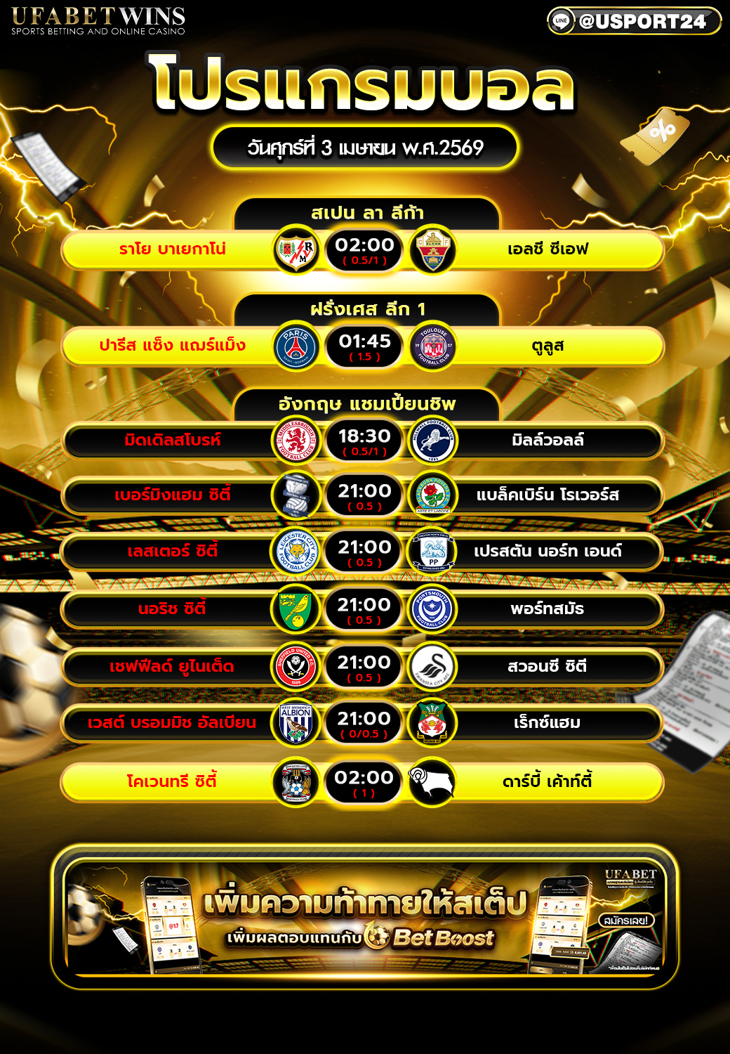 อีกจุดหนึ่งที่ทำให้คืนวันนี้น่าสนใจ คือการมีทั้งคู่ที่เน้นชื่อชั้นของสโมสรและคู่ที่เน้นความเข้มข้นของการแข่งขันในเชิงลุ้นผลการแข่งขันจริง เกมของ ปารีส แซ็ง แฌร์แม็ง พบ ตูลูส ย่อมเป็นคู่ที่ดึงความสนใจจากแฟนบอลวงกว้างได้ดี ขณะที่ฝั่งอังกฤษ แชมเปี้ยนชิพ ก็เต็มไปด้วยแมตช์ที่มีเสน่ห์เฉพาะตัว เพราะแต่ละทีมต่างมีเป้าหมายและแรงผลักดันของตัวเอง ส่วนเกมของ ราโย บาเยกาโน่ พบ เอลชี ซีเอฟ ก็ช่วยเติมสีสันให้กับช่วงดึกได้อย่างลงตัว ทำให้บทความนี้เหมาะมากสำหรับใช้เป็นหน้ารวมโปรแกรมแข่งประจำวันแบบครบถ้วน
