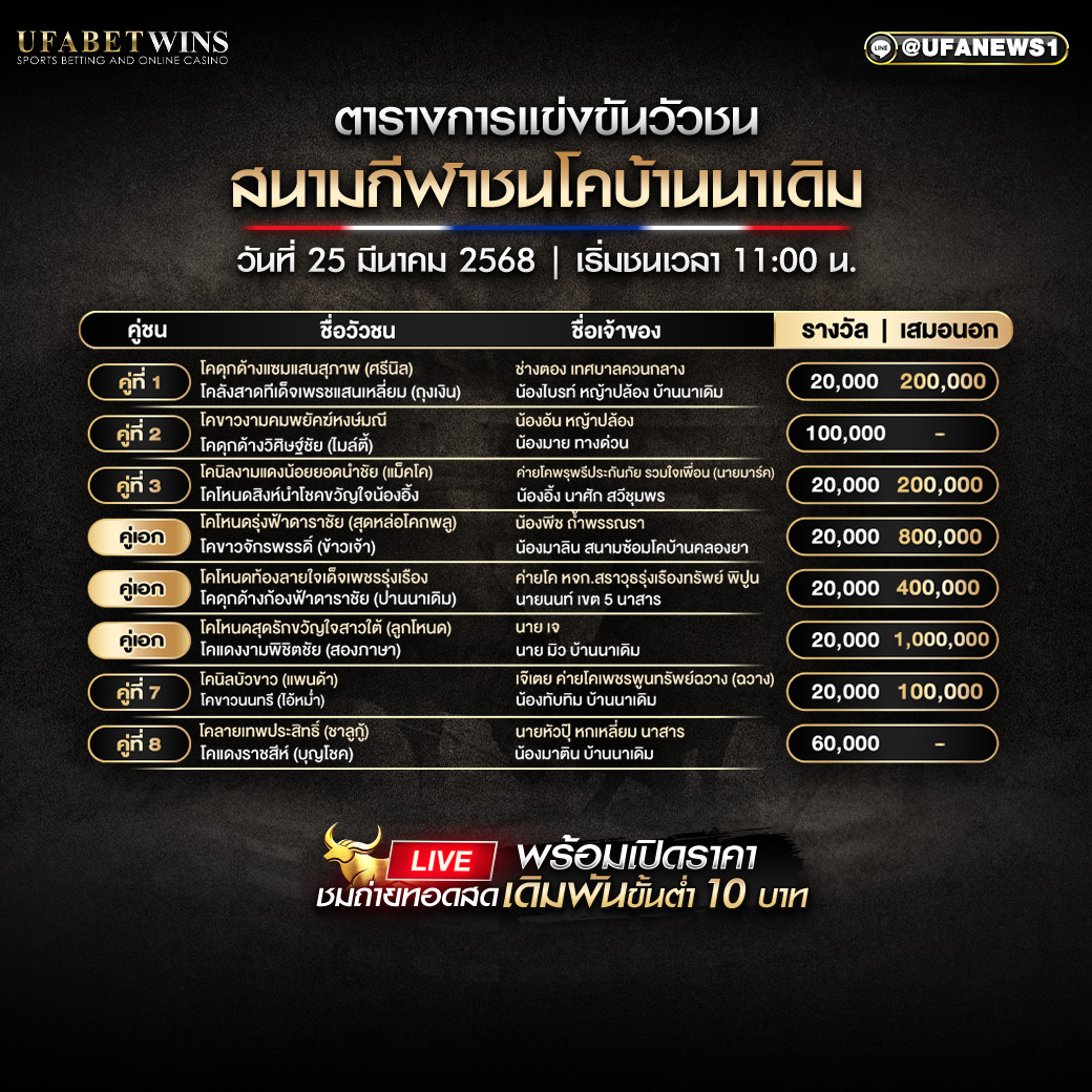 วันอังคารที่ 25 มีนาคม 2568 | เริ่มชนเวลา 11:00 น.