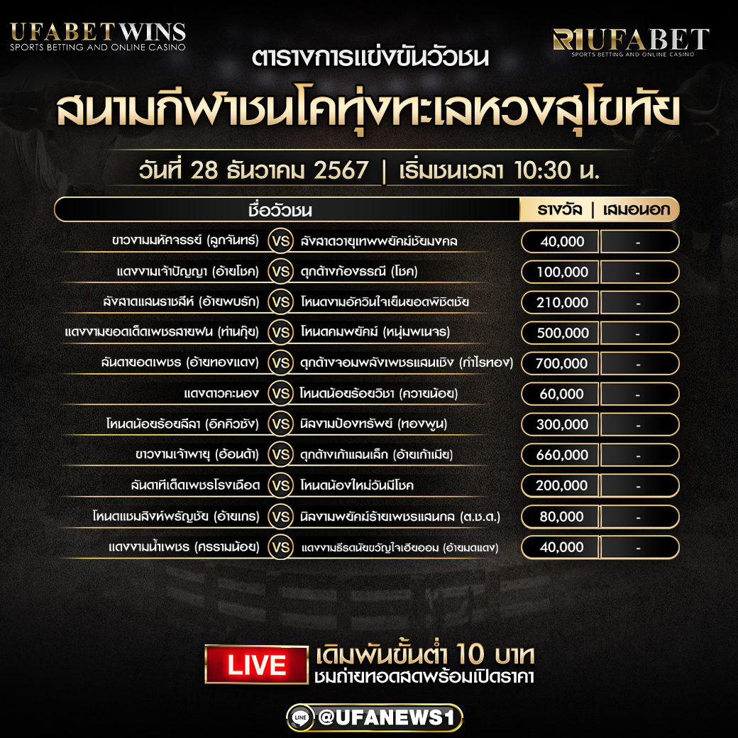โปรแกรมวัวชน สนามชนโคทุ่งทะเลหลวงสุโขทัย วันที่ 28 ธันวาคม 2567