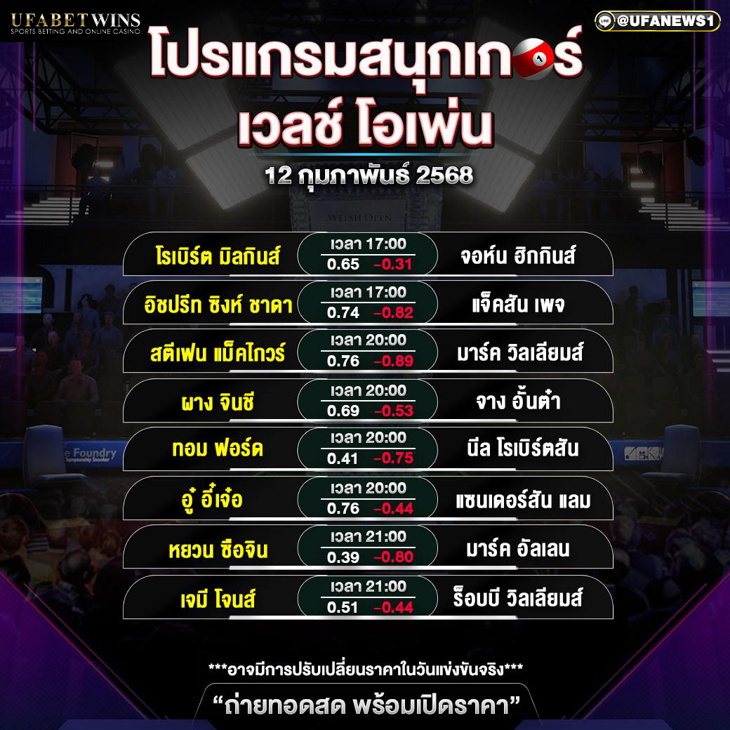 โปรแกรมสนุกเกอร์ ประจำวันที่ 12 กุมภาพันธ์ 2568