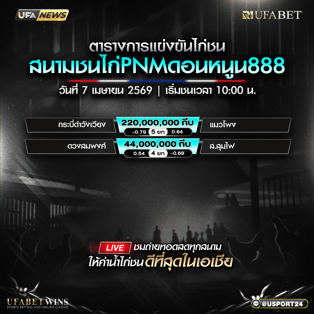 โดยสรุปแล้ว รายการประจำวันของสนามชนไก่ PNMดอนหนูน888 ในวันที่ 7 เมษายน 2569 เป็นโปรแกรมที่มีความกระชับแต่จัดองค์ประกอบข้อมูลไว้อย่างครบถ้วน เริ่มชนเวลา 10.00 น. และมีการแข่งขันทั้งหมด 2 คู่ โดยคู่แรกระหว่าง กระบี่ดำงังเวียง พบ แมวโพง เป็นคู่ที่มีเงินรางวัลสูงสุด 220,000,000 กีบ ขณะที่คู่ที่สองระหว่าง ดวงผมพงศ์ พบ ค.สุมไฟ มีเงินรางวัล 44,000,000 กีบ การจัดลำดับรายการเช่นนี้ทำให้ผู้อ่านสามารถมองเห็นจุดเด่นของวันนั้นได้ชัดเจนตั้งแต่ต้นไปจนถึงช่วงท้ายของบทความ