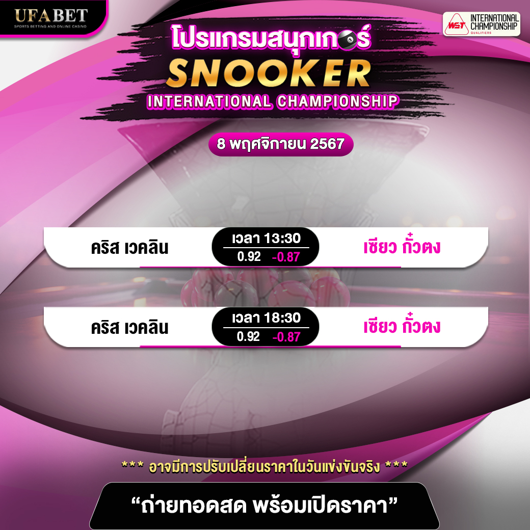โปรแแกรมสนุกเกอร์ ประจำวันที่ 8 พฤศจิกายน 2567